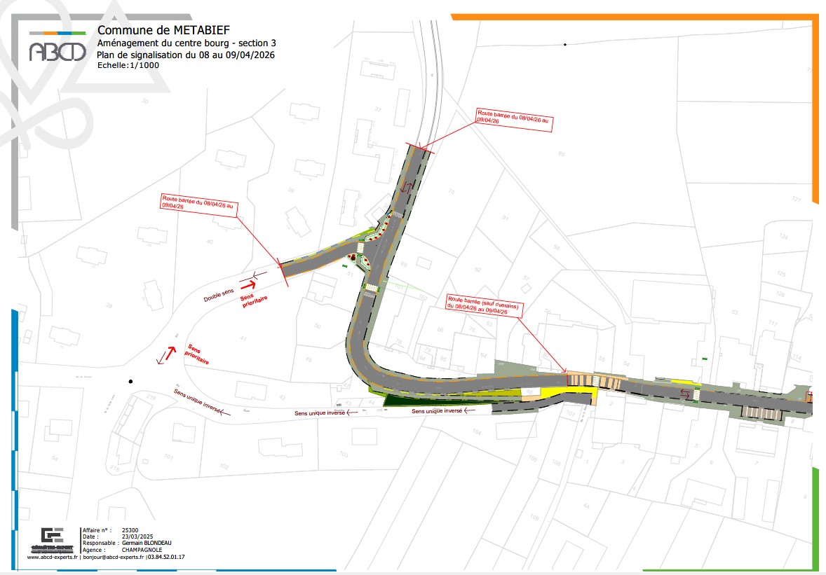 Selon arrêté municipal T21 du 3 avril 2026, consultable ici : https://metabief.fr/wp-content/uploads/2026/04/A2026_T_21_ARRETE_CIRCULATION_RUE_DU_VILLAGE_TRAVAUX_PHASE_3.pdf