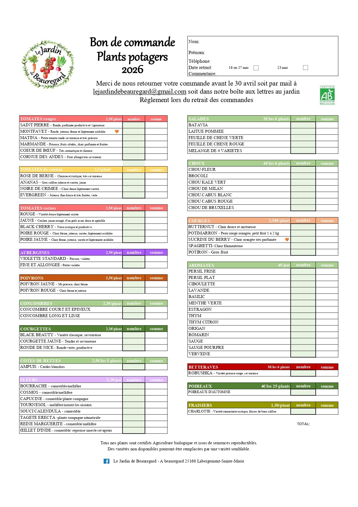Cette année c'est le Jardin de Beauregard à Labergement Sainte Marie qui nous fait profiter de ses plants bio afin de régaler nos papilles