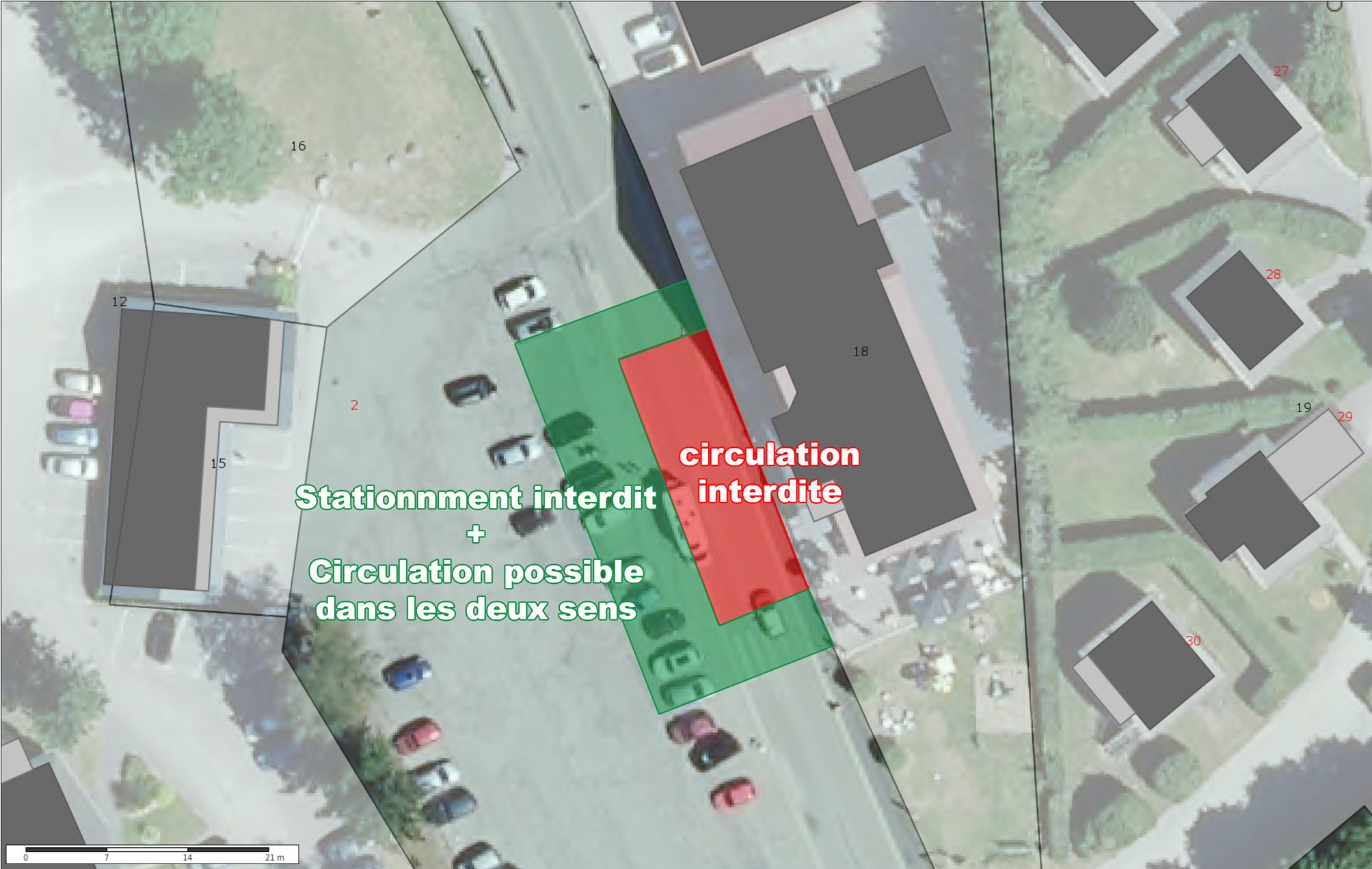 Le stationnement des véhicules est interdit dans la zone matérialisée, dédiée aux travaux.