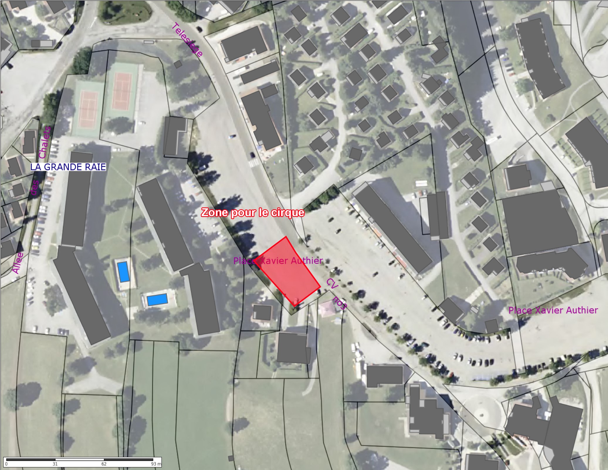 Article 2 : Durant cette période, les aires de stationnement situées sur la partie basse de la place (voir plan ci-dessous) seront réservées à l’organisation «Cirque Verone» afin d’y organiser un spectacle de cirque. Les voies d’accès aux propriétés riveraines seront maintenues à la libre circulation du public.
