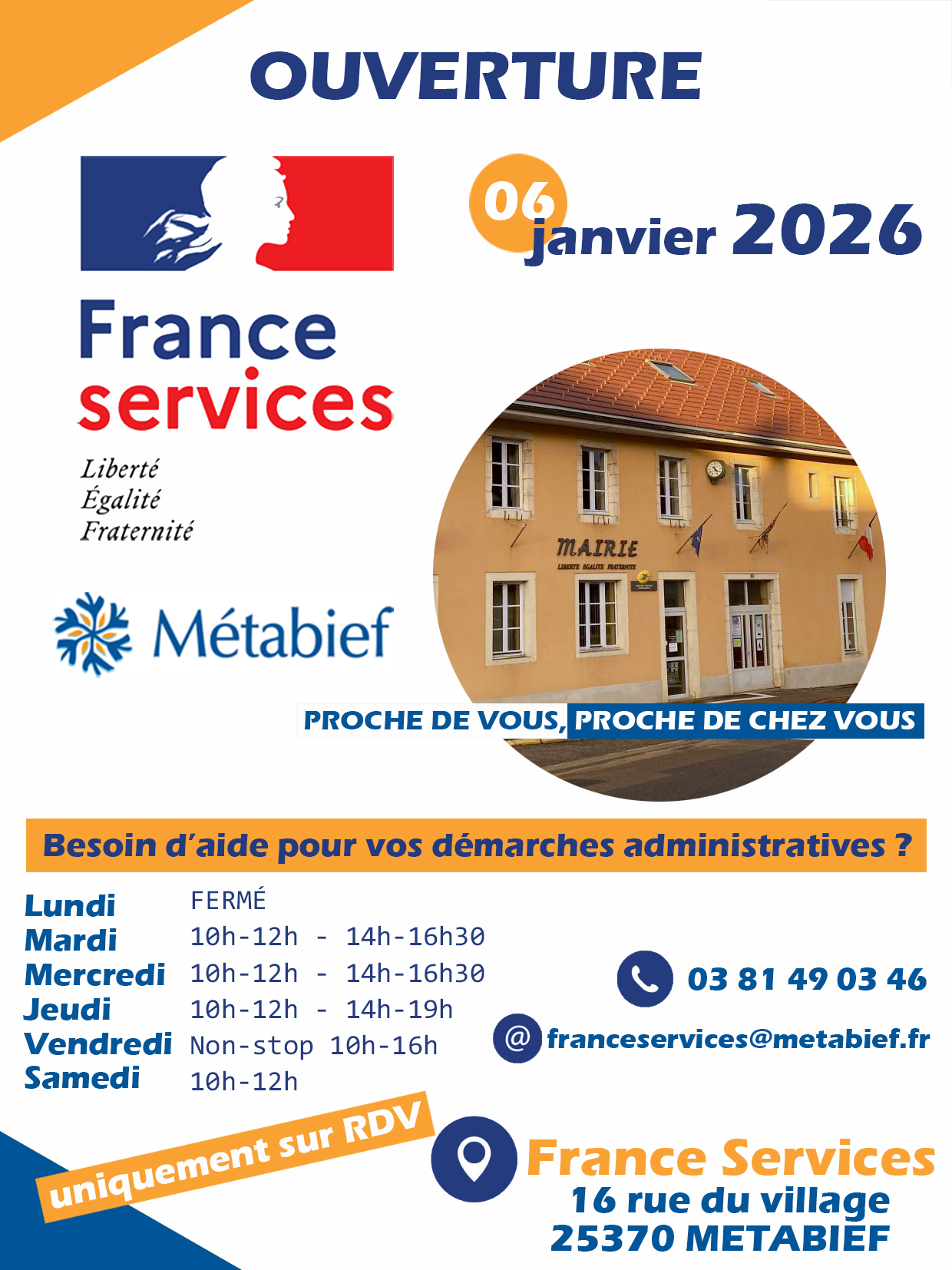 On vous l'avait annoncé en novembre dernier, votre Espace France Services ouvrira ses portes à Métabief